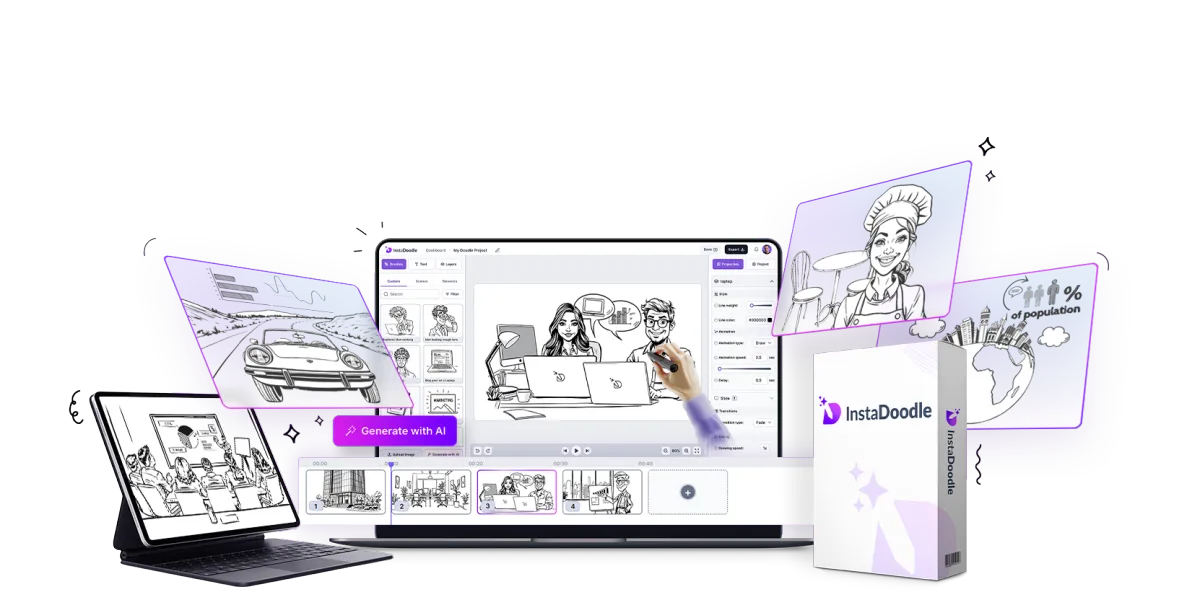 • AI Text to Video. Type it. InstaDoodle builds it.